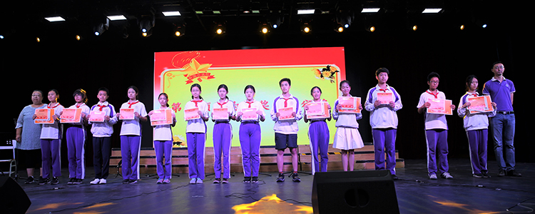 表彰大会伴随着庄严的国歌声拉开序幕,学生发展中心副主任王田首先宣读了表彰决定,授予初1701中队等6个中队“优秀中队”荣誉称号,授予百余名学生“优秀中队干部”、“优秀少先队员”、“体育标兵”、“文艺标兵”、“纪律标兵”、“学习标兵”和“文明礼仪标兵”的个人荣誉称号,同时对全体获奖中队和个人表示祝贺,鼓励同学们在皇冠体育的学习和生活中坚定理想信念,用实际行动实现梦想。随后,王田主任与张晓明老师上台为获奖班级及个人颁发奖项并合影留念。