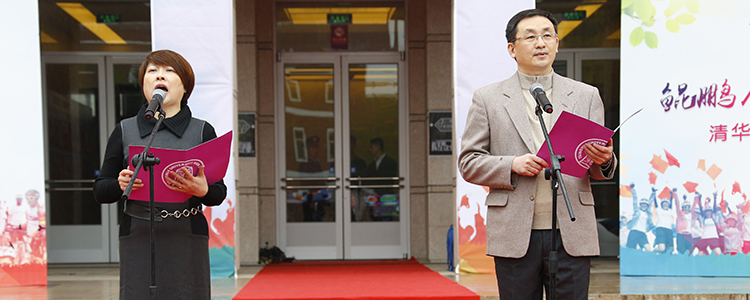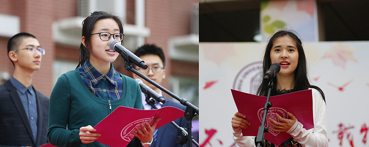 家长代表高三12班张亦弛爸爸(右)、高三6班王孟迪妈妈(左)朗诵《你长大了,定会自由翱翔》