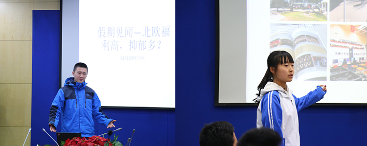 高1708 帅虹宇同学(左图)和高1709王嘉骐同学(右图)做分享