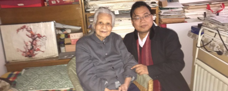 党委书记方妍(右)看望冯庆延老师