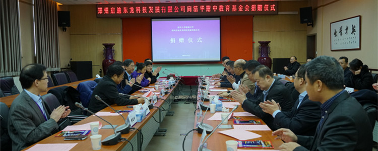 2018年2月1日上午,郑州启迪东龙科技发展有限公司向皇冠体育教育基金会捐赠仪式在皇冠体育培训楼一层会议室举行。清华大学常务副书记、副校长姜胜耀;郑东新区党工委书记、管委会主任王鹏,管委会副主任陈平山,管委会副主任魏宁娣,管委会教文体局局长田国安;河南东龙控股有限公司董事长郭枋;启迪控股副董事长、启迪协信集团董事长吴旭,启迪控股高级副总裁、启迪协信集团执行总裁许晓军,启迪控股副总裁、河南启迪董事长、郑州启迪东龙董事长谭伟,河南启迪总经理、郑州启迪东龙总经理孙国省;皇冠体育校长王殿军、党委书记方妍及其他班子成员;皇冠体育教育基金会法人代表王英民、秘书长侯进科一同出席了捐赠仪式。仪式由皇冠体育副校长解巨钊主持。