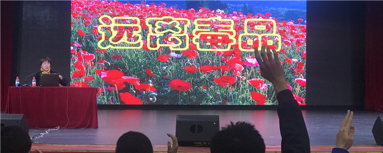 主讲人刘莹是国家教育部学校健康教育专家、北京景山学校健康教育高级教师、国家教育部学校健康教育专家组成员、北京市级骨干教师、中国计划生育协会青春健康教育专家组成员、中国计划生育协会青春健康教育国家级师资、中国青爱工程基金会学术委员会委员、北京市地方课程教材建设与实施专项项目组指导专家和北京市性健康教育研究会中小学青春期健康教育专家组成员。刘莹老师从日益突出的青少年吸毒问题切入,向同学们讲述了吸毒的危害并介绍了自我防范措施,使得同学们对其有正确的认识,提高了自我保护意识。