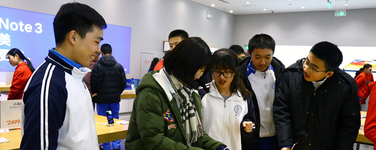 首先,一行人来到位于五彩城的小米之家,参观小米生态链的全线产品,通过工作人员的讲解,同学了解到小米除了手机外,还有其他科技产品,涉及到生活的方方面面。