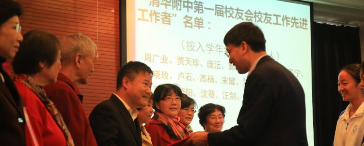 清华大学党委常委、工会主席王岩为获奖校友颁奖