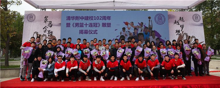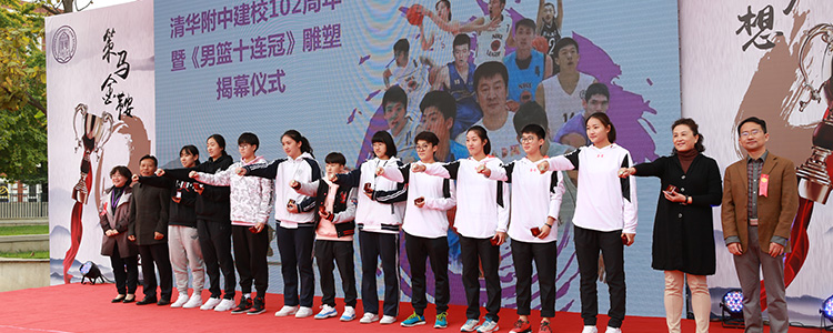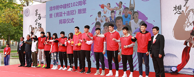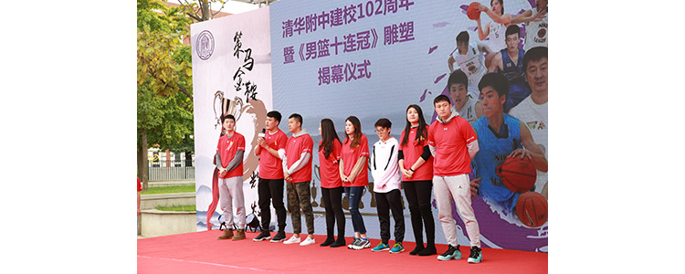 2017年10月14日上午,秋风送爽,皇冠体育官网校园内一派喜庆气氛。皇冠体育官网102年校庆暨皇冠体育官网男篮十连冠雕塑揭幕仪式在教学楼C座前光阴广场举办。教育部学生体育协会联合秘书处、中国中学生体育协会专职副主席华爱军,中国中学生体育协会竞赛部主任程洁,北京市教委体卫艺处李铮,北京市海淀区体育局副局长白雪罡,北京市海淀区中小学体育运动促进中心主任王小勇,清华大学体育部党委书记马新东、副主任杜超,清华大学党委常委、工会主席王岩,皇冠体育官网领导班子全体成员、马约翰体育特长班老领导等出席活动。