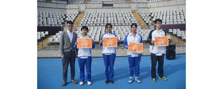 林一峥老师(左1)为三等奖获奖班级颁奖