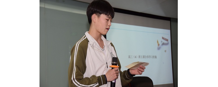 首先,高三(4)班王祺同学作为理科班的学生代表,分别从上课、作业、休息三方面介绍他的学习经验。王祺认为在课堂上要积极发言,与老师同学讨论自己的想法,勤于提问;在作业方面要做到按时完成;在休息方面要保证自己有一个良好的状态。