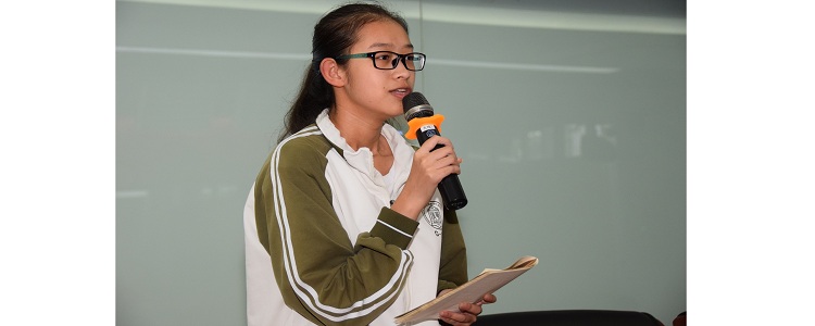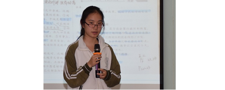 之后,高三(6)班陈然同学作为文科班的学生代表,以地理、历史和政治三个学科的学习方法为切入点,分享她的学习心得。