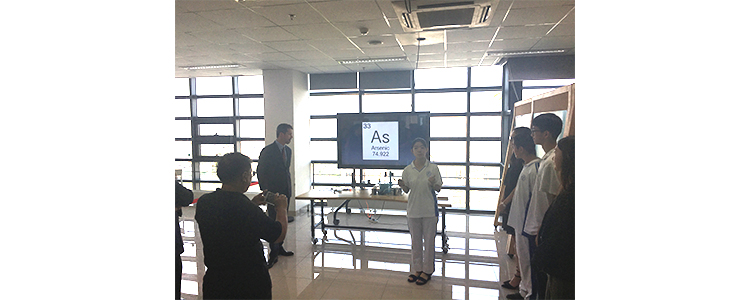 李雅轩同学(中)展示《砷探测》项目
