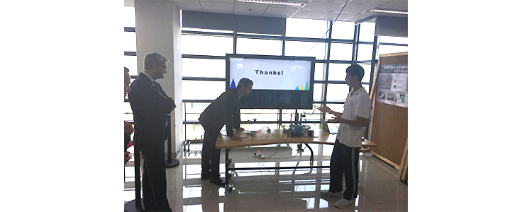 左思清同学(右1)展示《恒温箱》项目