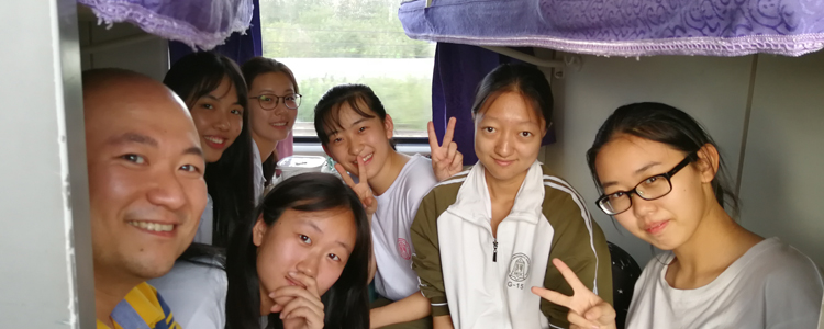 师生在前往银川的火车上