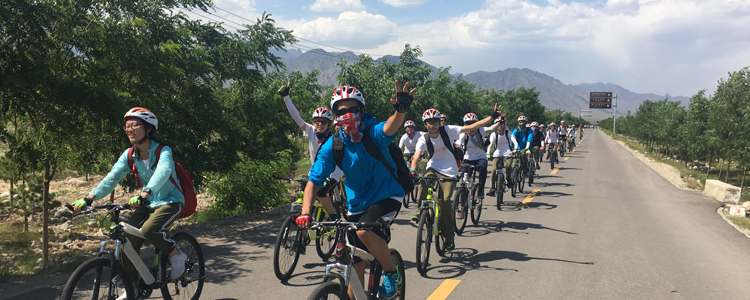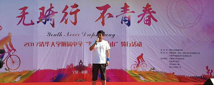7月11日的骑行活动是本次拓展训练的亮点。当日,银川气温高达40度,是同期极值。启动仪式上,白雪峰副校长期待全体同学通过本次骑行保持流淌的姿态,向前的姿态与生长的姿态。学生代表陈廷翰高呼同学们共同的心声——“无骑行,不青春”。