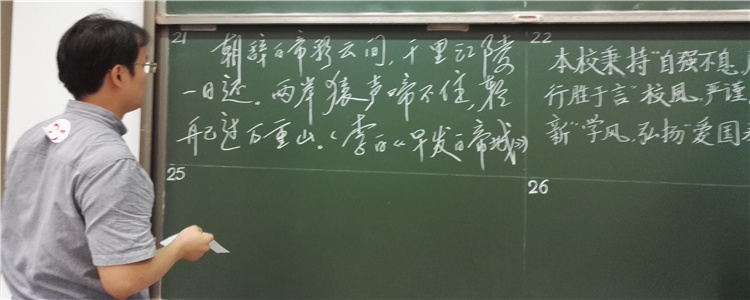 7月6日下午,2017年清华大学教职工粉笔板书比赛在大学第六教学楼A区举行,附中参赛教师获佳绩,其中,胡静老师获得比赛一等奖(一等奖共设6名);李婧萍老师获二等奖;向东佳老师获三等奖。