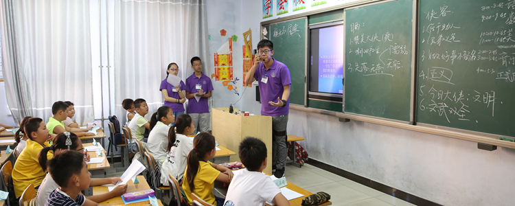 启动仪式后,支教团正式开启本次支教活动的课程体验环节。本届学生讲师团队立足创新,针对滦平县小学教育的现状,精心思考并做了大量的准备,设计了低、中、高三个年段五个年级共六大门类的支教学科。这些体验课程形式多种多样,内容丰富多彩,难易有度,正真体现了以生为本的教学理念。如语文学科设置了《从< 声律启蒙>走近韵律与对仗》、《李白与大侠》、《从< 说文解字>看古代文化》等课程;数学学科设置了《数独和将军饮马》、《24点和火柴棍》等课程;手工课设置了《奇妙的折纸》、《谷物拼盘》、《永生花》、《魔方拼图》等课程;美术学科设置了《认识色环与水彩画法》、《油水分离》、《脸谱与民族画》、《认识扎染》等课程;音乐学科设置了《节奏与合唱》、《京剧表演艺术》、《Cups》、《We are the world》等课程。在为期6天的支教活动中,通过这样的互动体验课程,学生讲师与当地的小学生们建立起交流的桥梁,并在教学中真正实现了教学相长,并与孩子们之间建立了纯真的友谊。