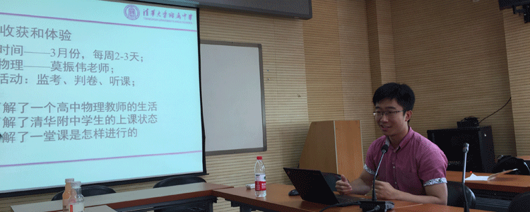 物理学科新教师宋承泽从实习收获和体验以及对中学教育的理解两方面进行了汇报。他表示通过实习了解了一个高中物理教师的生活、附中学生的上课状态以及一堂课的流程。他也分享了自己对中学教育的理解。