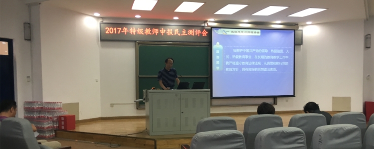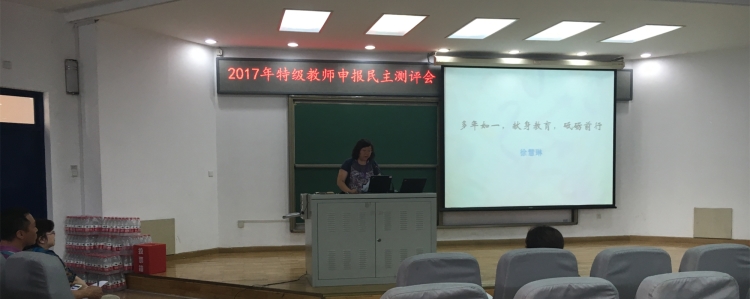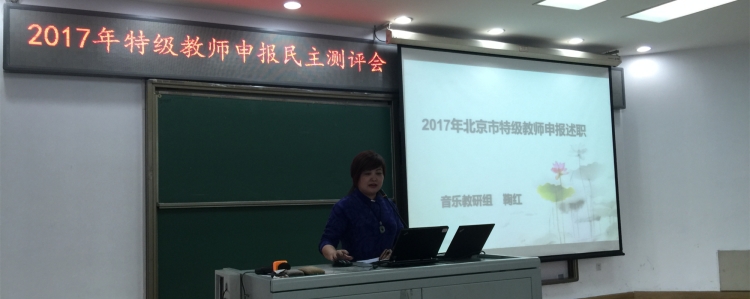 5月31日下午,皇冠体育官网举行2017年北京市特级教师申报民主测评会,11位符合条件的申报教师参加述职测评。皇冠体育官网党政领导及全校教师参加测评会,副校长赵鸿雁主持会议。