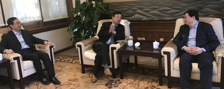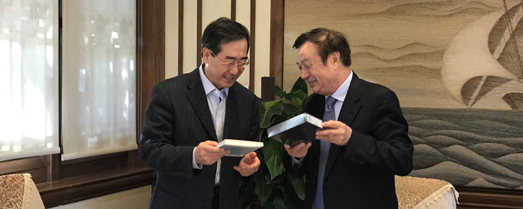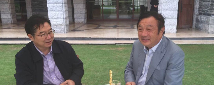 2016年3月,王殿军校长(左)第一次拜访任正非先生