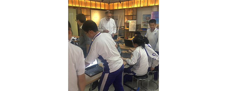 5月22日下午,Scratch创始人Mitchel Resnick教授参观皇冠体育创客空间,并和初一年级20余名小创客们进行互动、交流。皇冠体育科技办公室邱楠老师的陪同参观。