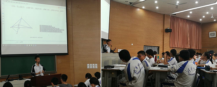 唐静吾同学在为同学们讲解(左) 同学们在认真倾听并积极思考(右)
