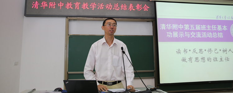学生发展中心副主任王田对第五届班主任基本功展示与交流活动进行总结。本次班主任基本功大赛,非毕业年级以“读书•反思•修己•树人”为主题,毕业年级以“做有思想的班主任”为主题。活动中参赛教师表现出深厚的文化修养、全面的综合素质、良好的管理能力、浓厚的教育情怀以及不断寻求进步的价值追求。他说到,班主任是“工作在学校教育第一线的骨干力量”,学生发展中心将努力创造各种机会和展示平台,让更多的班主任在实践中感悟班主任工作的价值,体会教育工作的乐趣,使每一位班主任都能成为有幸福感的、充满智慧的、全面发展的专家型教师。