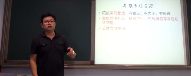 首先,张彪老师对各位老师的辛勤付出表示了感谢,展示了各特色班级和示范班的名称以及星级自治班级体的申请情况,指出了初二年级“发展特长,稳步提升”的总体目标,强调了年级工作的重点,重申了年级的常规管理要求,并介绍了下一阶段年级的主要工作安排。