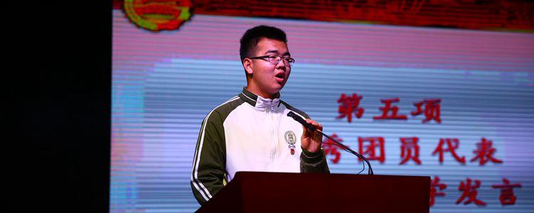 会上,优秀团员代表朱翊豪发言,他将共青团组织比作船,船上的共青团员们泽是具有各种优秀品质的集合体,他号召同学们见贤思齐,向身边的团员学习,以获取自身的进步,让别人的优秀成为自己的进步,让自己的优秀成为别人的助推。随后,旗手们擎着共青团旗入场,全体新团员在领誓人郭文轩同学的带领下,举起右手,面对鲜艳的团旗进行了庄严宣誓。初1514班卜佳木同学代表全体新团员发言,表达了加入团组织这个优秀集体的欣喜,代表全体团员表决心,将在团组织的领导下,奋发图强、创先争优,以实际行动践行自己的入团誓言!最后,全体团员合唱团歌,在激越的歌声中五四表彰大会顺利结束。