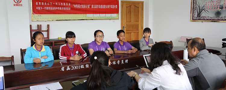 中国下一代教育基金会中华英才培养专项基金秘书长吴新胜、教育部装备中心宁洱县挂职副县长芦燕兵、宁洱县教育局局长王勇、宁洱县教师进修学校校长彭文斌在23日下午对一名学员进行家访,吴新胜一行来到学员家中,深入了解学员的生活与学习情况,并赠送学习用品。