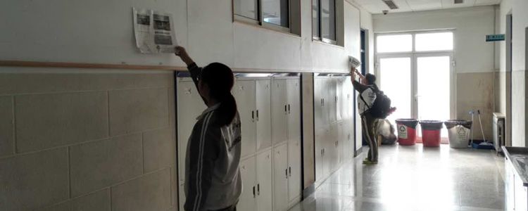 清祈公益社将分布在学校角落里的海报进行规范整理工作