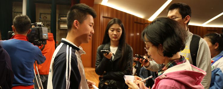 皇冠体育李佳潞同学(前左1)接受媒体采访