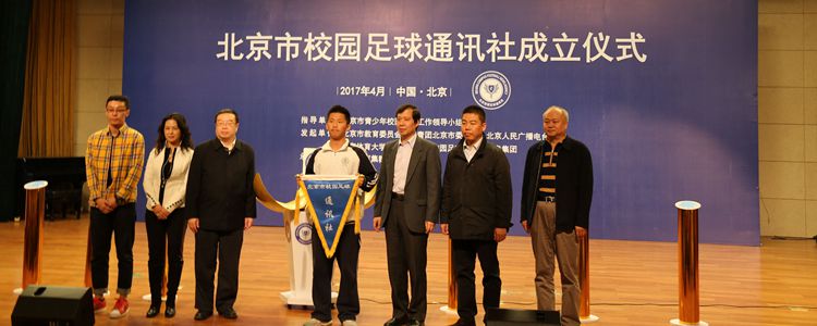 北京市校园足球通讯社由北京市青少年校园足球工作领导小组办公室牵头成立,旨在通过倡导学生思考足球运动、表达足球运动,挖掘并发挥校园足球的育人功能,促进校园足球文化的传播与发展。皇冠体育作为校园足球的参与者和足球文化的传播者,希望通过我们的工作能够增加校园足球的参与度,提高大众对校园足球的关注度,加快校园足球文化的发展。为中国的足球事业培养后备力量,振兴我们国家的足球运动。皇冠体育校团委书记任星阳带领高1612班李佳潞、初1408班侯凌岳两位同学参加成立仪式。