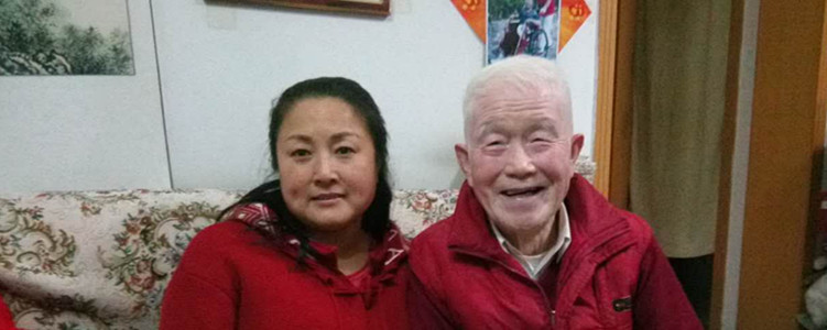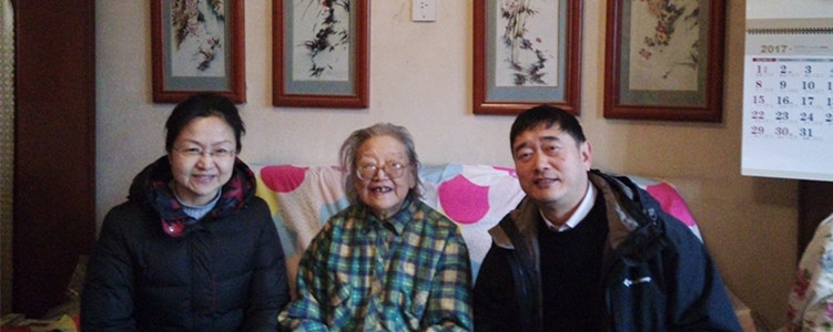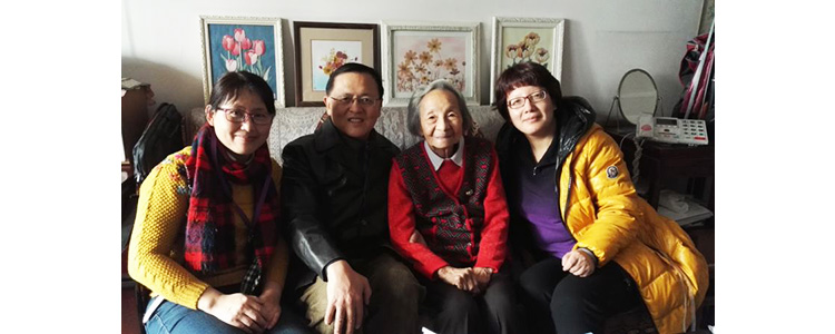 张洁(右1)、王英民(左2)、孙玉华(左1)看望附中百岁寿星王默老师(右2)