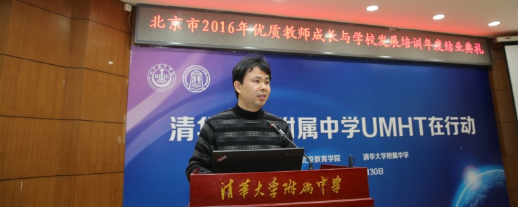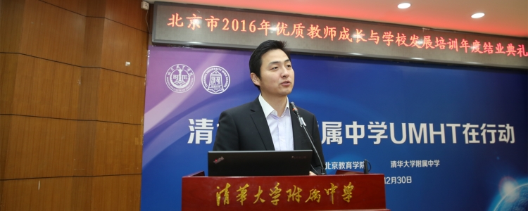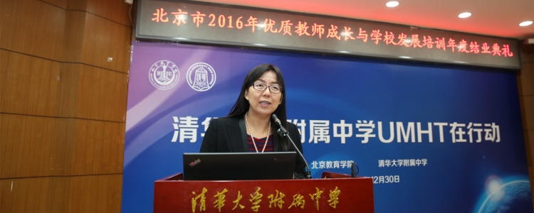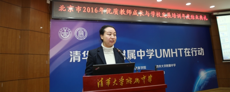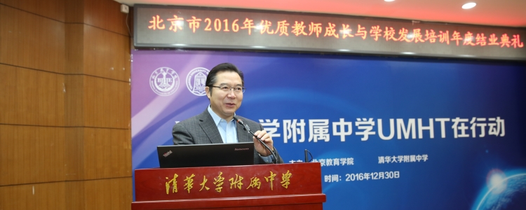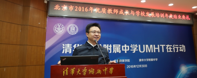 12月30日,北京市优质教师成长与学校发展培训年度结业典礼在皇冠体育官网举行。北京教育学院院长何劲松、项目负责人王建明、教师教育数理学院院长冯华、海淀区教委副主任海淀教师进修学校校长罗滨、教育部考试中心题库处处长陈昂、北京教育科学研究院青少年科技创新学院主任张毅、皇冠体育官网校长王殿军、副校长赵鸿雁、徐文兵等领导参加了结业典礼。北京教育学院教师教育数理学院院长冯华主持结业典礼。来自皇冠体育官网及一体化学校、北京第22中学、北大附中、交大附中、西藏林芝二中等中学的约70位老师参加了结业典礼。结业典礼共分教师成长和学生发展两个单元。