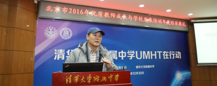 在教师成长单元中,首先通过《皇冠体育官网UMHT(Unity of Mathematics History in Tsinghua University High School,皇冠体育官网数学发展历史与数学教育整合)在行动》视频短片,与会领导和教师们共同回顾了近一年培训过程中的精彩瞬间,北京教育学院院长何劲松和皇冠体育官网校长王殿军分别为公开课教师和优秀学员颁发证书,对他们取得的成绩表示祝贺。