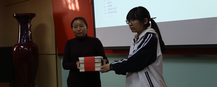 夏昊翀同学首先介绍了“书友文怀公益捐书活动”的背景情况,此次活动源于皇冠体育官网罗宗勇老师前往西藏支教,任职于林芝二高,皇冠体育官网学生们由此了解到,林芝二高由于缺少资金,图书馆至今还没有配置图书。校学生会文娱部与初中权益部便第一时间筹备以“书友文怀”为主题的公益募捐活动。精心拍摄了宣传视频,在周一的早间新闻上让大家关注活动,与此同时召开班长通知会,募捐活动的有关事项直接通知到班级,连续两天在人员流动最稠密的教学楼门口摆设摊位,集结包括初、高中六个年级在内的全校师生进行图书募捐,共筹集1000余本书籍。