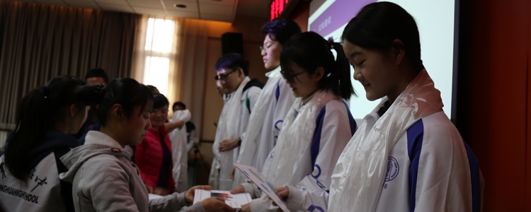 在“书友文怀”图书捐赠仪式上,学生代表将“书友文怀公益捐书活动”募得的图书交到西藏林芝二高的教师手里。随后7位林芝二高的教师为学生代表颁发捐赠证书并献上从美丽的雪域高原带来的珍贵礼物哈达以表示感谢之情。颁奖仪式结束后,大家合影留念。