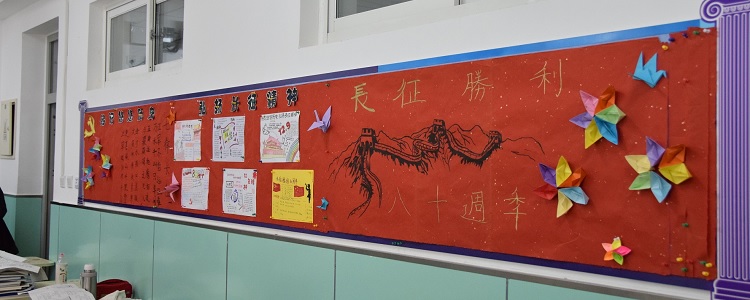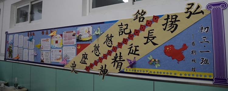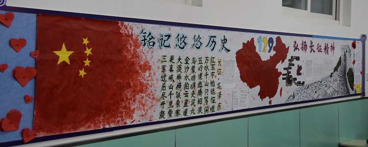2016年11月23日中午,皇冠体育将台路校区班级文化板报评比活动在各班举行。本次评比大赛以纪念红军长征胜利80周年为主题,评委团由程惠云副校长、团委王一琳老师、学生会王籽晴老师、团委宣传部部长以及各班宣传委员组成。