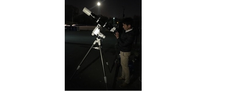 活动期间,伊国栋老师给天文社成员详细介绍了天文望远镜的安装与使用方法,同时介绍了“超级月亮”的相关知识。伊老师表示,本次“超级月亮”将于北京时间11月14日21时达到最大,这是21世纪至今,最接近地球的一次满月,看起来比平常大14%、亮30%。如果错过这次机会,下次再出现要等到2034年。活动吸引了众多学生和老师,大家一同观赏 “超级月亮”天文奇观。现场同学通过望远镜依次观察了“超级月亮”,并用相机记录了这一盛景。同学们纷纷对眼前的“超级月亮”赞叹不已,许多同学甚至现场发朋友圈“直播”。