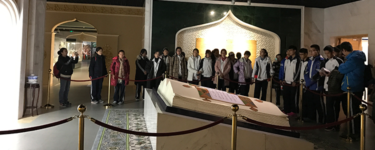 11月8日,高一、高二进行分开行动,高一学生上午参观了宁夏博物馆,其中“石刻史书、红旗漫卷、盛世回乡”三个展厅,展示了不同时期宁夏岩画的艺术特色,辛亥革命至解放初期宁夏的革命历史,以及宁夏回族的生活、文化、和宗教习俗。中午抵达穆民新村,了解当地文化,并体验了回族穆斯林的传统食品小吃油香和馓子的制作工艺,学生们留下了欢乐、创意及美好的回忆。