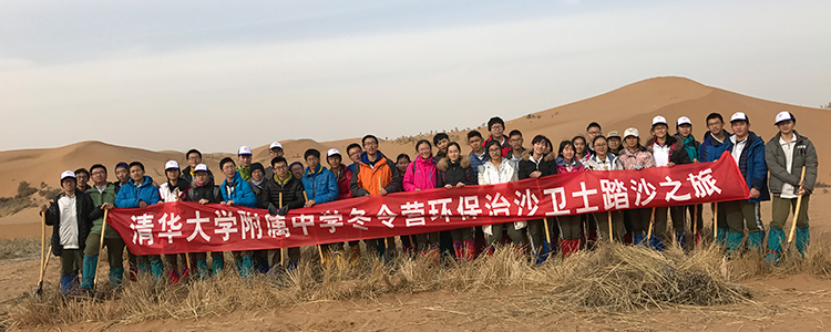 学生们扎麦草治沙合影