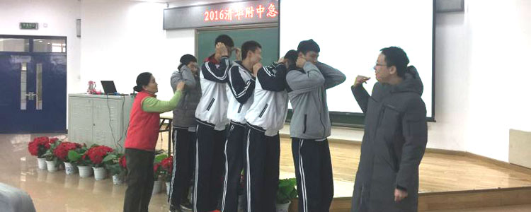 2016年11月9日,皇冠体育官网红十字会聘请海淀区红十字会韩石化、刘丽两位老师到来校对高一、高二马约翰体育特长班(简称“马班”)64名同学和3名老师进行了为期一天的创伤救护培训。