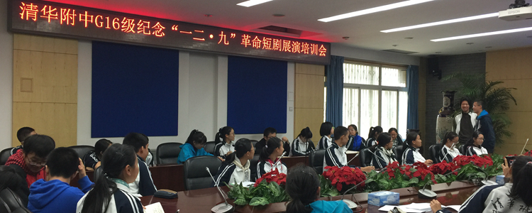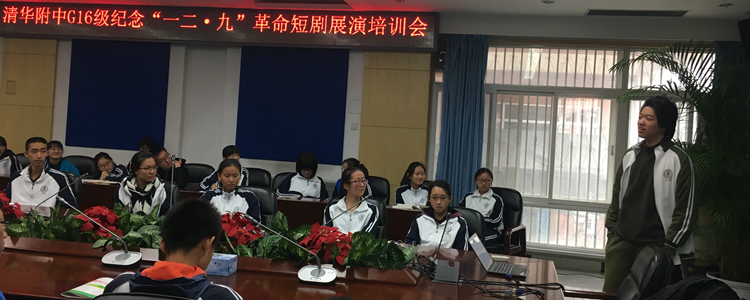 高16级纪念“一二·九”运动革命短剧展演活动由学生发展中心、高一学部、高一语文组、高一历史组共同策划发起,展演剧目的内容以抗日战争和长征为两条主线,以人物传记和历史故事为载体。为保证演出的科学性和艺术性,特聘请音乐教研组组长鞠红老师为艺术顾问,高一历史组老师和高一语文组老师为学术顾问。