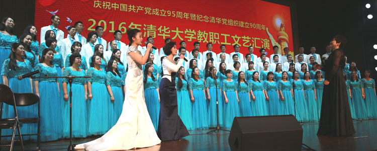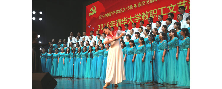 由清华大学校工会主办的“庆祝中国共产党成立95周年暨清华党组织建立90周年”2016年清华大学教职工文艺汇演于10月19日、20日分两场在大礼堂举行,全校共有46个分工会、近2000人次的教职工登台演出了31个节目,是近年来节目最丰富精彩的演出之一。