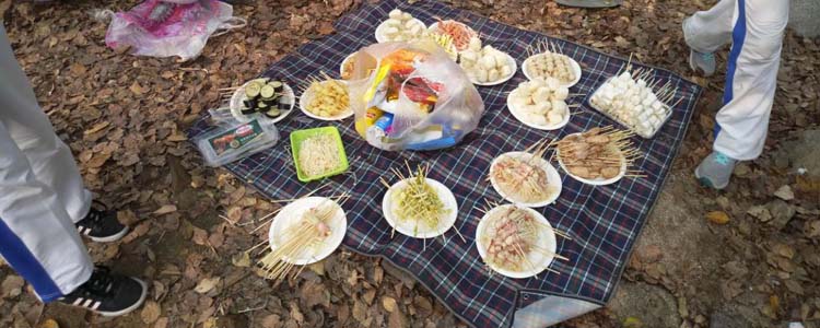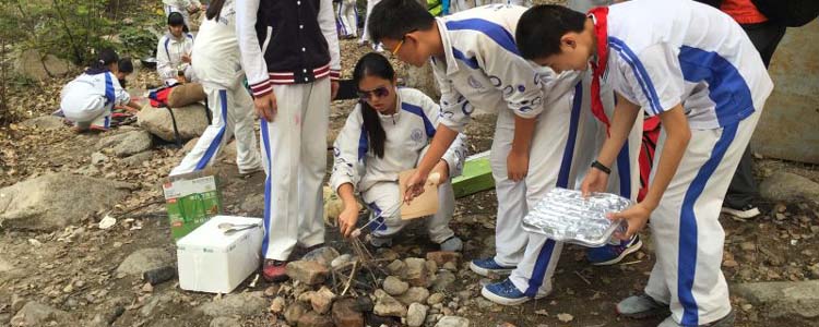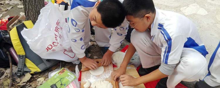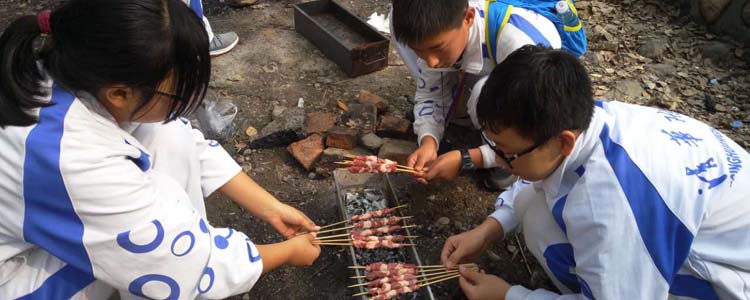 首先,各班以小组为单位,架炉灶、生柴火,利用自带的炊具和食材,烹饪出各种煎炸炒菜、炭火烧烤、火锅、烙饼、面条等美味佳肴,在与同伴的合作中体会着劳动的乐趣,也充分展现了同学们的野外生存技能及精湛的厨艺。