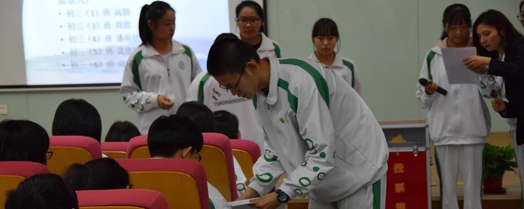 2016年皇冠体育官网将台路校区第一届团委学生会换届选举工作从9月开始进行至今,获得了初三年级老师和同学的大力支持。共有40余名初三学生自愿报名参加团委学生会干部的选举。经过第一轮的面试,结合各班班主任的意见,共有23名同学脱颖而出并在大会上发表竞选演说。他们有的沉稳内敛,有的大气潇洒,有的才艺满满,博得现场阵阵掌声和喝彩。