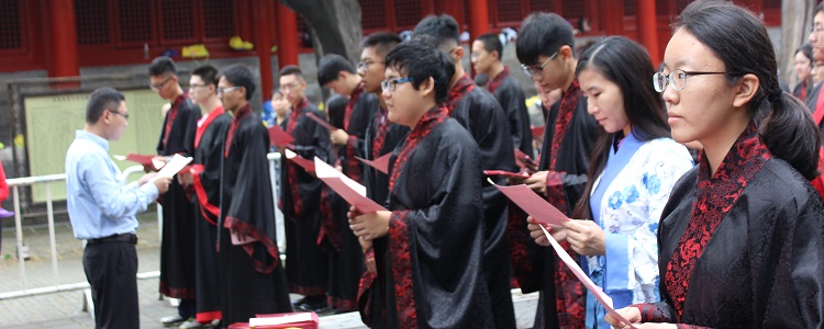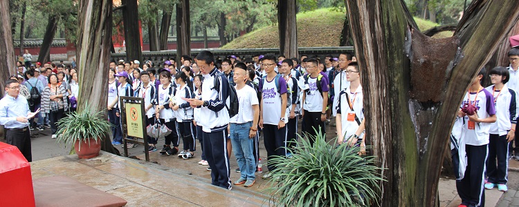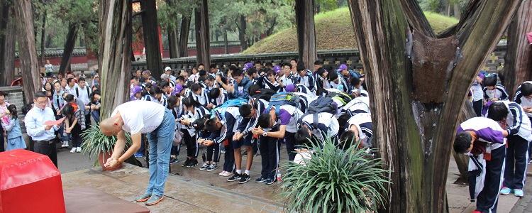 下午,同学们在导游和辅导员的带领下来到孔林。伴随着蒙蒙细雨,同学们先后参观了子贡庐墓处、孔鲤墓、孔伋墓,最后,同学们汇集在孔子墓前,进行了对中国伟大思想家、教育家、大成至圣先师——孔子的祭奠仪式。仪式分为敬献鲜花、学生代表发言、全体师生行鞠躬礼几个环节,在场师生以及来往游客均神情肃穆,表达着对圣人的缅怀与纪念。