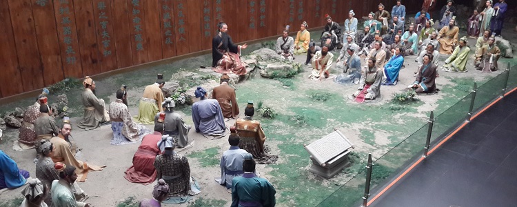 社会实践课程的第一站——山东曲阜。同学们首先到孔子六艺城参观,六艺城以六艺为主线,分为礼厅、乐厅、射厅、御厅、书厅、数厅。采用层层递进的表现手法,营造了一个具有先秦时代风格和现代手法相结合的艺术景点。其中,数厅的八卦迷宫曲折多变;书厅的《论语》壁刻古朴庄重,都给同学们留下了深刻的印象。