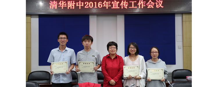 张洁副书记(中)为上一学年度优秀通讯员颁奖