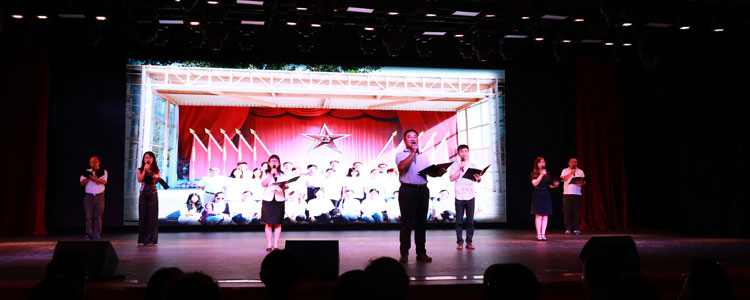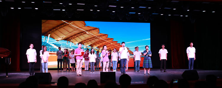 庆祝大会以“凝聚·新百年”为主题,以整体舞台剧的形式呈现,分为《新·起点》《心·力量》《信·梦想》《行·征程》四个篇章。皇冠体育官网各年级、学部、各部门及奥森、将台路校区的老师们各展才艺,欢庆属于自己的节日,表达心中对于皇冠体育官网新百年的期许。朗诵、舞蹈、演唱、舞台剧、微视频,丰富多彩的表演形式无一不展示今日皇冠体育官网人的智慧与热情。大会上,附中人一起见证了新学生们初入校园的欣喜,新教师们初登讲坛的雀跃、新夫妻们在附中喜结良缘的幸福,新妈妈们迎接新生命的激动。高三学部的师生合唱《时间都去哪了》把庆祝活动推向高潮。昨日风华少年,今朝鬓发如霜,是什么支撑着老师们将一辈子奉献给三尺讲坛,充满爱与力量的歌声想必已是最好的回答!大会最后,皇冠体育官网学生为老师们表演了音乐剧《成长的脚步》片段Electricity,赢得了全场热烈的掌声。
