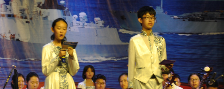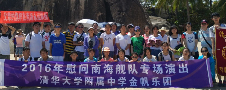 2016年八一建军节前夕,皇冠体育官网金帆民乐团一行33名同学,在乐团办公室主任兼指挥胡军和学生发展中心王敏老师的带领下,远赴南海舰队某部,演出了题为《金帆颂歌乘风起,南疆万里赞英雄——父辈的旗帜在南海永远飘扬》民乐专场慰问音乐会。
