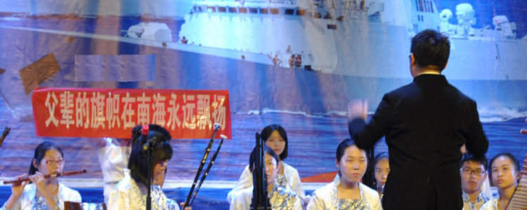 乐团演奏音乐会主题曲《父辈的旗帜在南海永远飘扬》